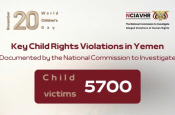 The Commission also calls on the UN envoy to Yemen to play his role in condemning the violations committed against citizens and placing the issue of human rights among the priorities of any peace talks sponsored by the United Nations.